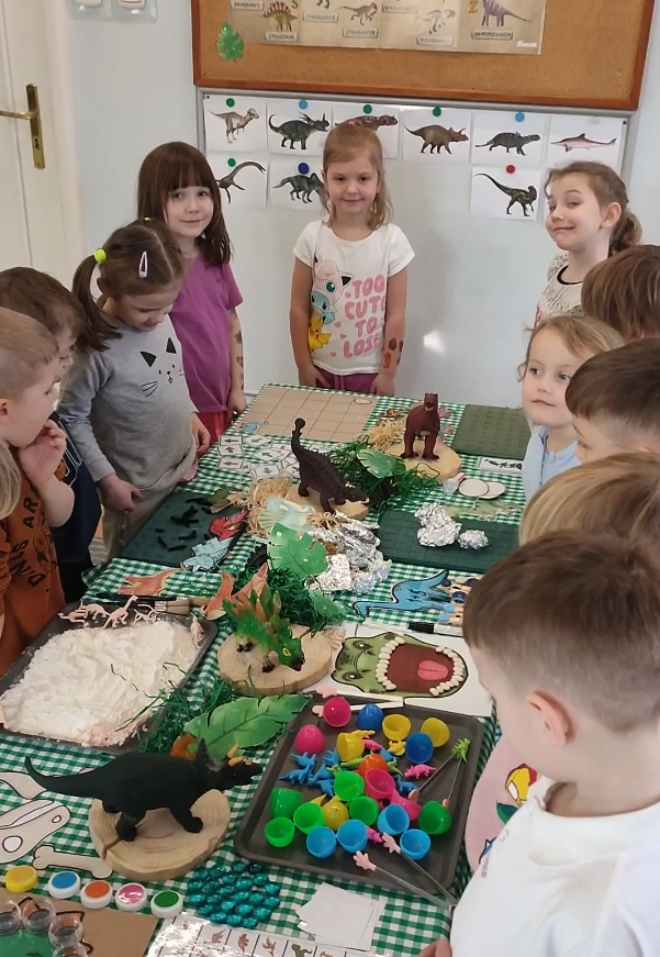 Kotki-psotki 🐾 odkrywały niezwykły świat dinozaurów 🦖 Dzieci z ciekawością poznawały prehistoryczne stworzenia, uczestniczyły w różnorodnych aktywnościach i rozwijały swoją wyobraźnię poprzez zabawę 🎨 To był czas pełen uśmiechu, nowych doświadczeń i małych wielkich …